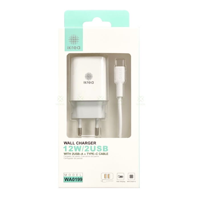 IKREA WA0199 CARGADOR 2 PUERTOS CON SMART IC CON CABLE TYPE-C 2.4A