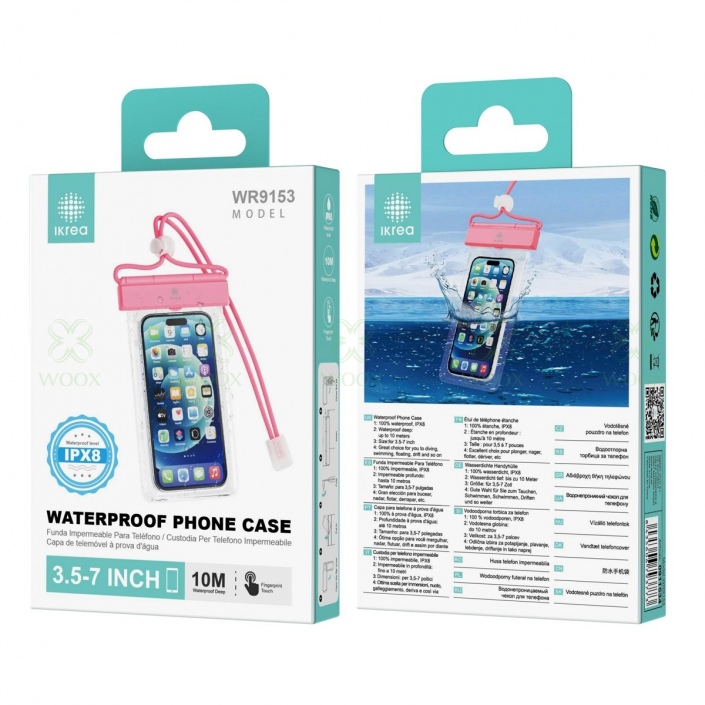 IKREA WR9153 FUNDA CON CORREA IMPERMEABLE PARA MÓVIL 3.5-7'' IPX8 ROSA