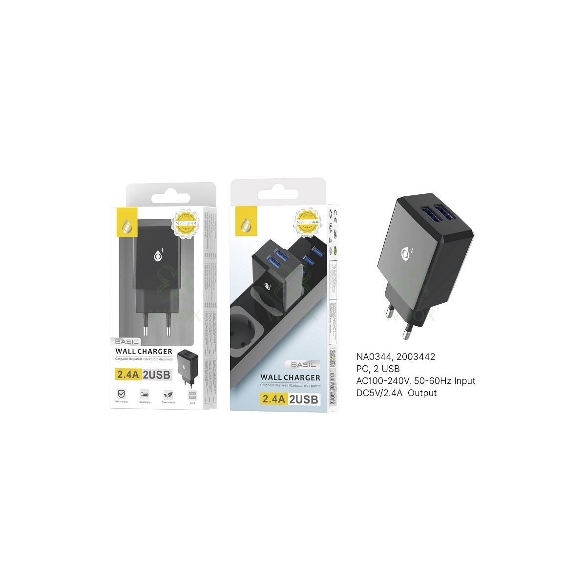 ONEPLUS NA0344 CARGADOR DE DOS CONECTORES USB DE 2.4A NEGRO