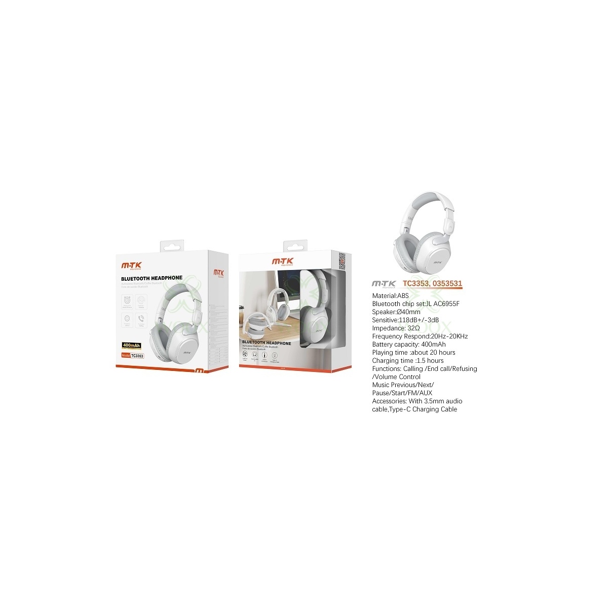 MTK TC3353 AURICULARES BLUETOOTH CON MICROFONO BLANCO