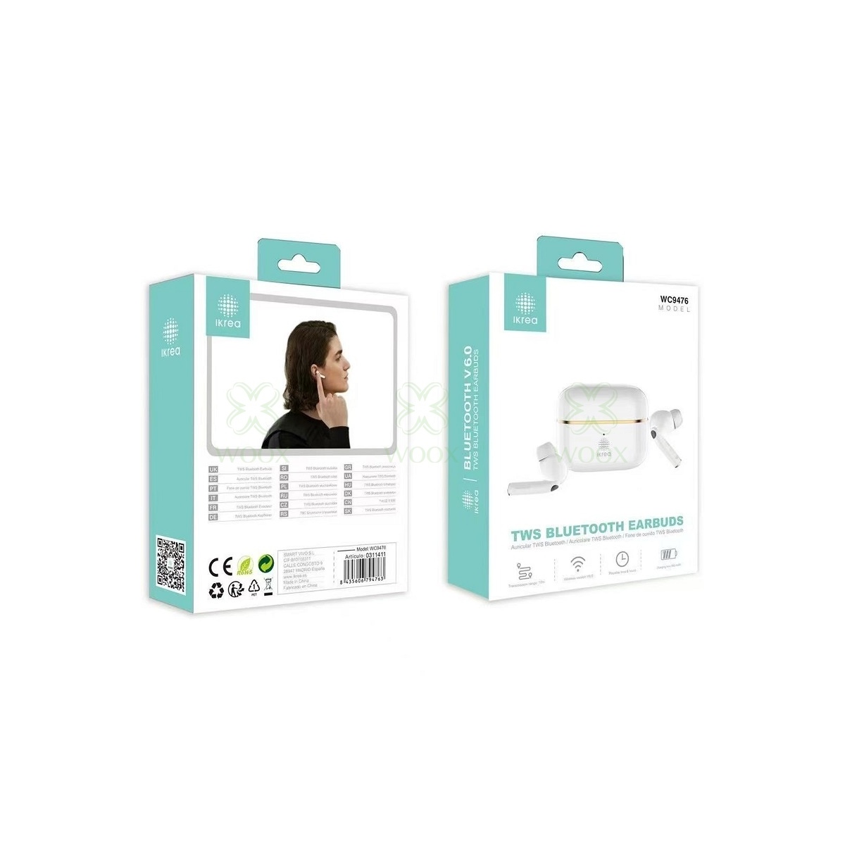 IKREA WC9476 AURICULARES INALAMBRICOS CON GOMA TWS BLUETOOTH V6,0 BLANCO