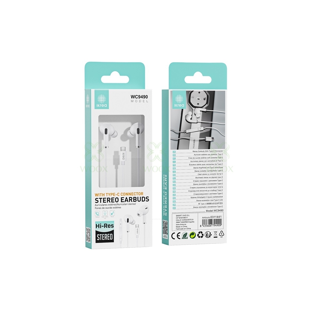 IKREA WC9490 AURICULARES HI-RES STEREO CON GOMA CONECTOR TYPE-C BALNCO