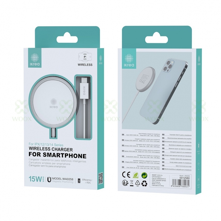 IKREA WA0258 CARGADOR INALÁMBRICO PARA IPHONE CON CABLE TYPE-C 15W BLANCO