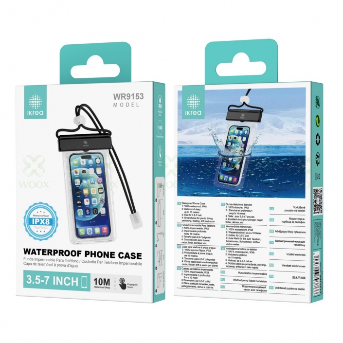 IKREA WR9153 FUNDA CON CORREA IMPERMEABLE PARA MÓVIL 3.5-7'' IPX8 NEGRO