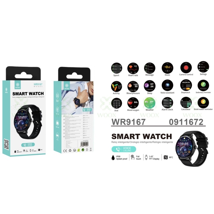 IKREA WR9167 SMART WATCH IP68 1.43'' TFT DISPLAY CON FUNCIÓN LLAMADA Y NFC NEGRO
