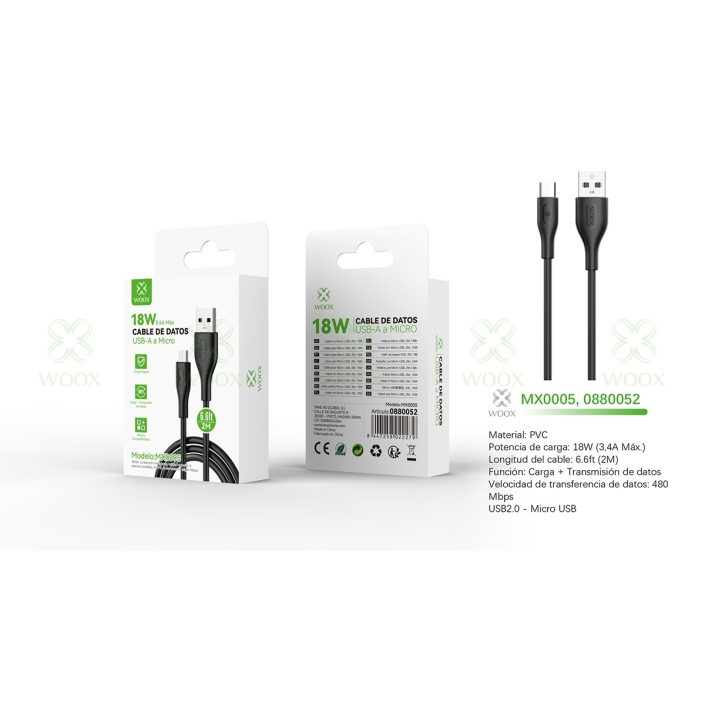 WOOX MX0005 CABLE DE DATOS USB TO MICRO 18W 2M NEGRO