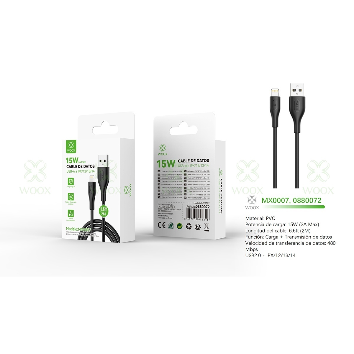 WOOX MX0007 CABLE DE DATOS USB TO LOGHTNING 15W 2M NEGRO