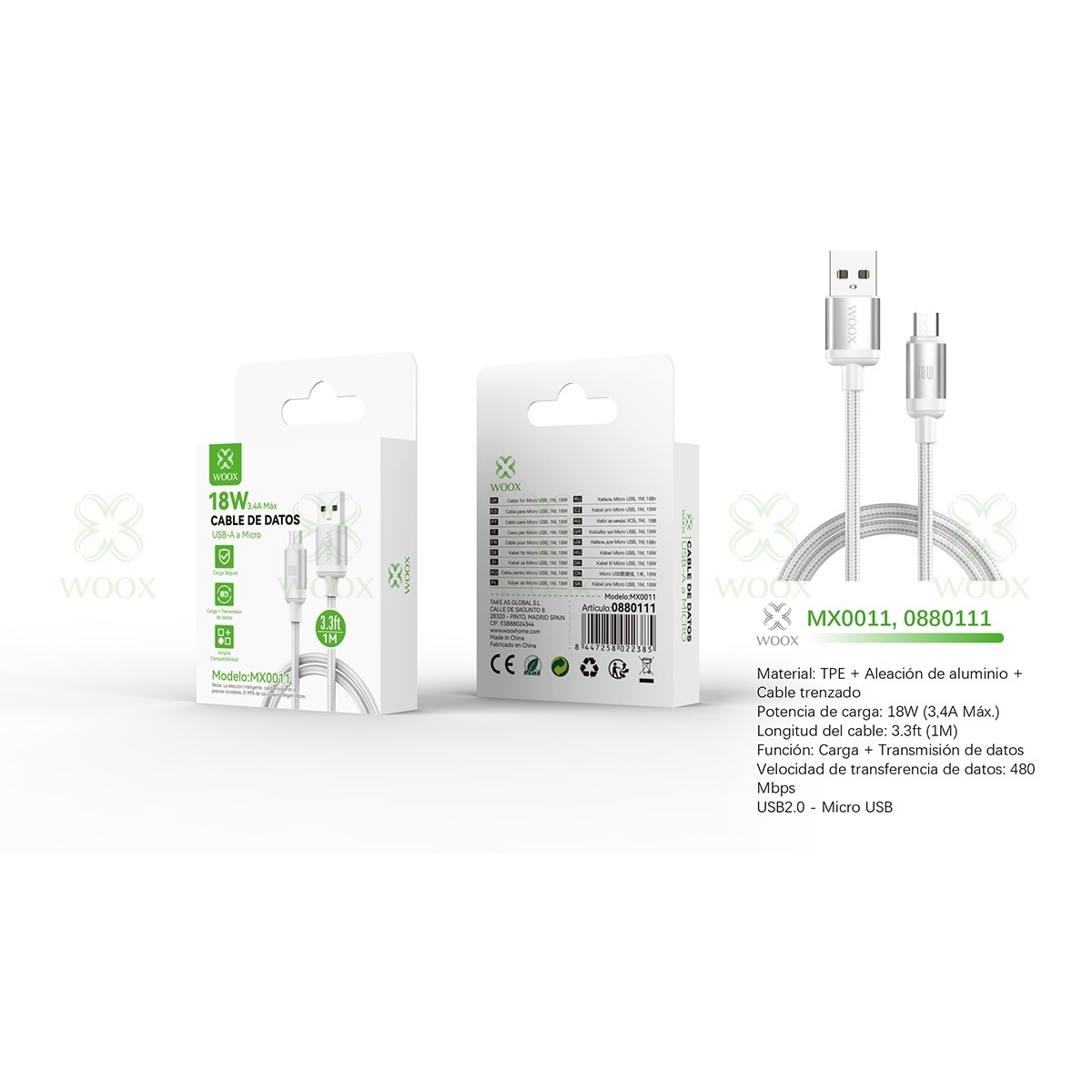 WOOX MX0011 CABLE DE DATOS USB TO MICRO 18W 1M BLANCO