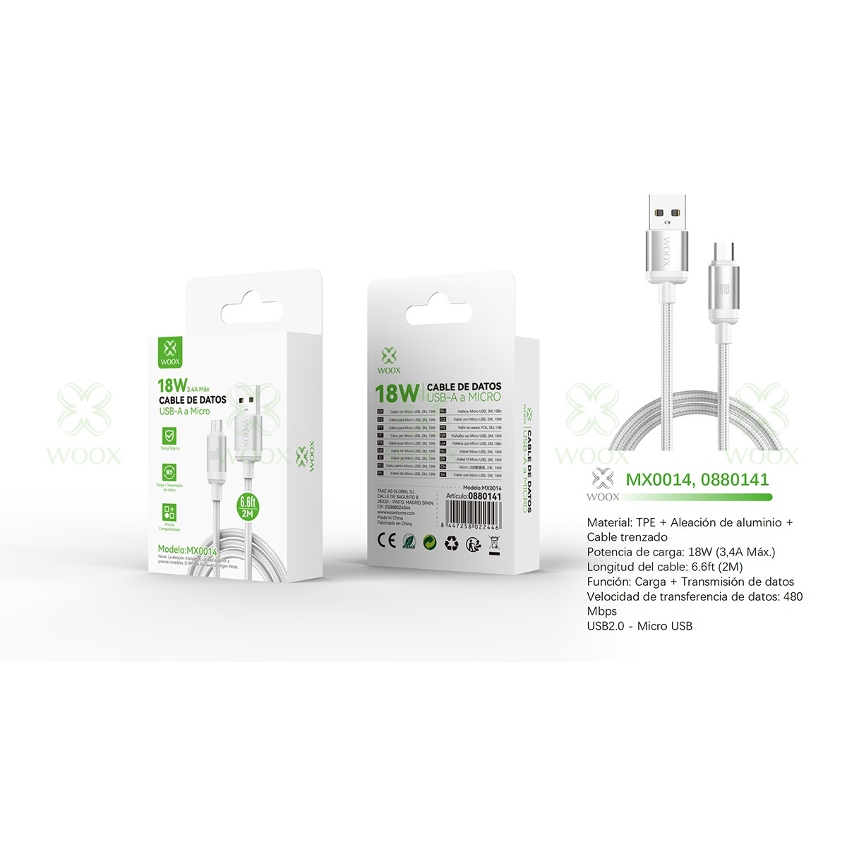 WOOX MX0014 CABLE DE DATOS USB TO MICRO 18W 2M BLANCO