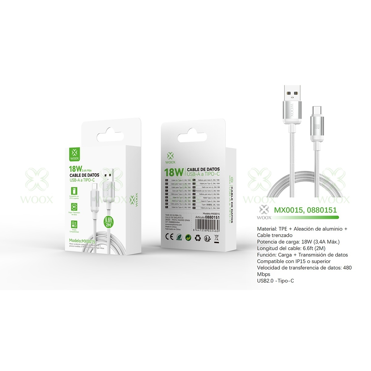 WOOX MX0015 CABLE DE DATOS USB TO TYPE-C 30W 2M BLANCO
