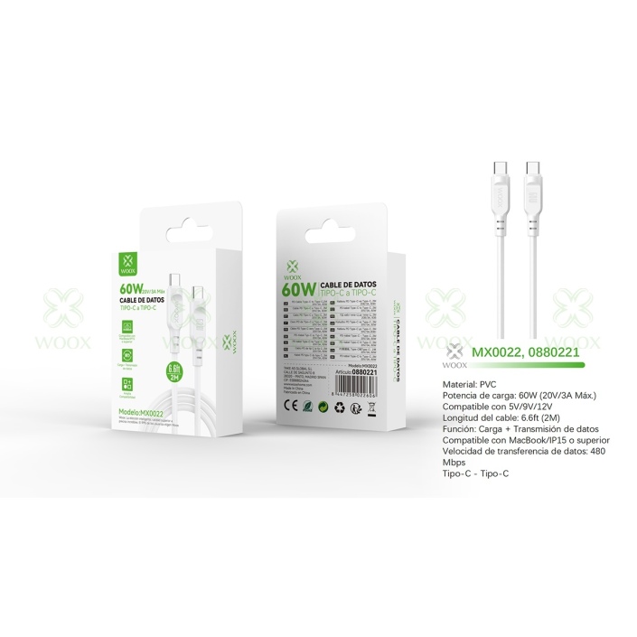 WOOX MX0022 CABLE DE DATOS TYPE-C TO TYPE-C 60W 2M BLANCO