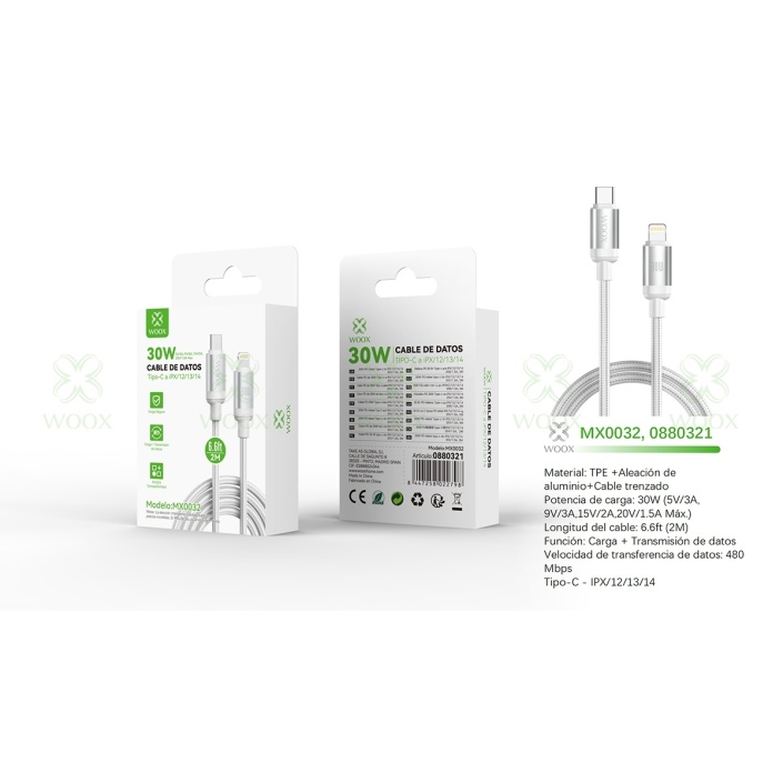 Cable de Datos MX0032 Type-C to Lightning 30W 2m-Blanco