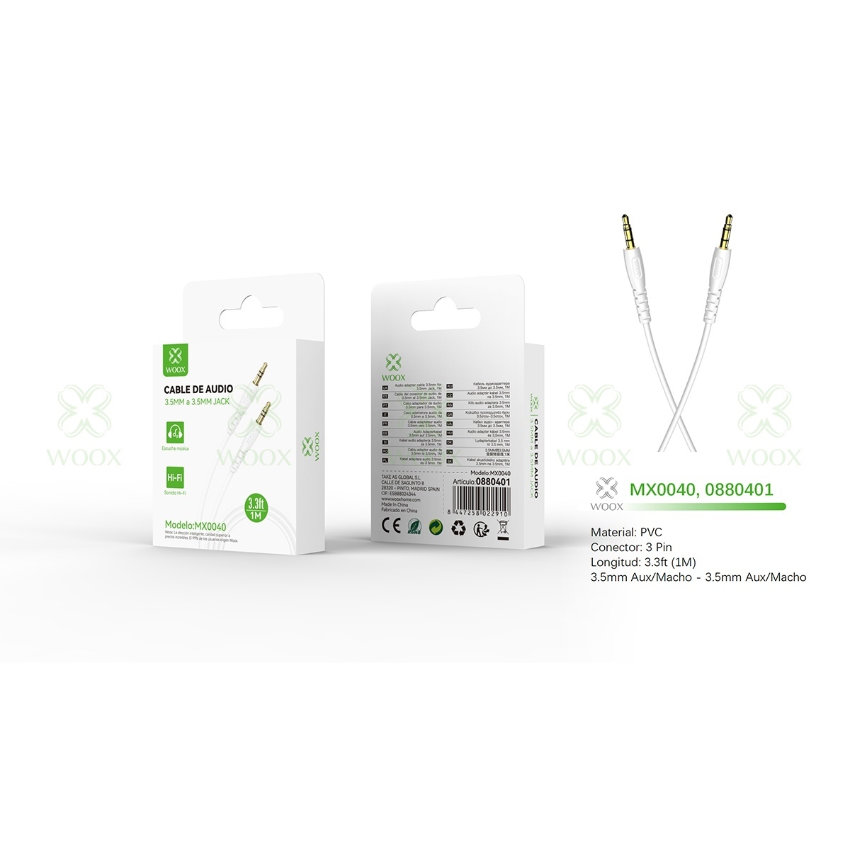 WOOX MX0040 AUDIO CABLE 3.5MM AUX TO 3.5MM AUX 1M BLANCO