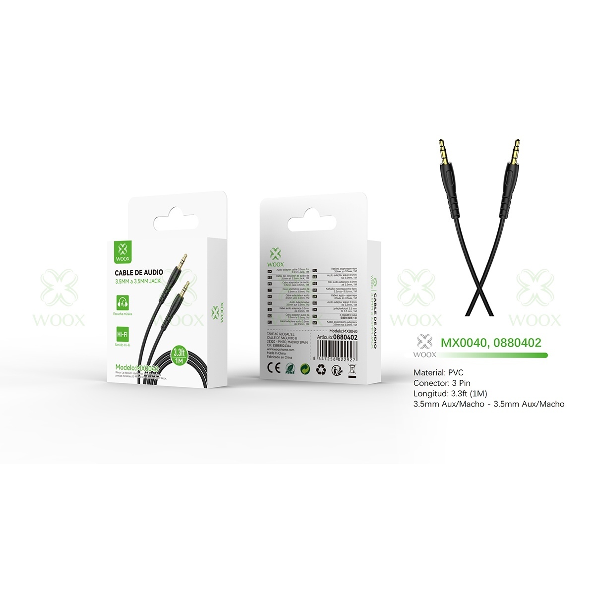 WOOX MX0040 AUDIO CABLE 3.5MM AUX TO 3.5MM AUX 1M NEGRO