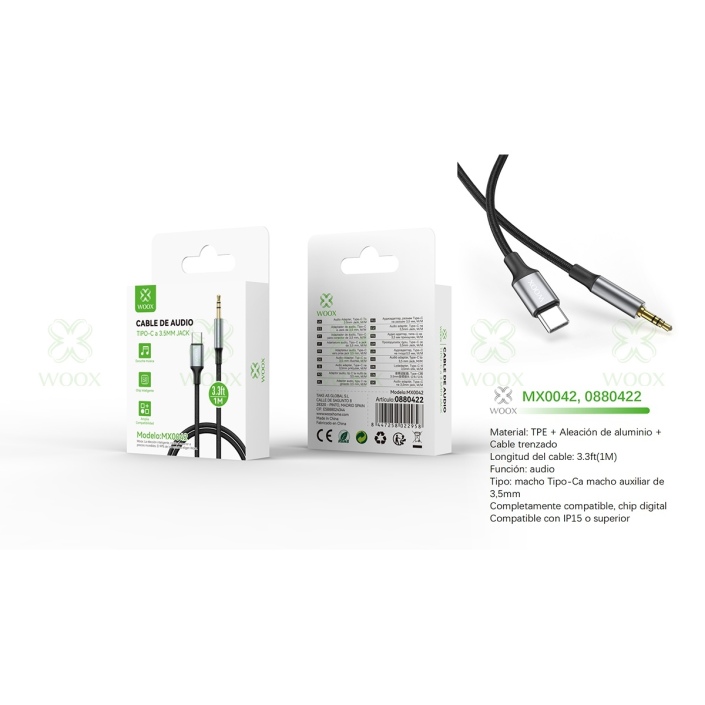 WOOX MX0042 AUDIO CABLE 3.5MM AUX TO TYPE-C 1M NEGRO