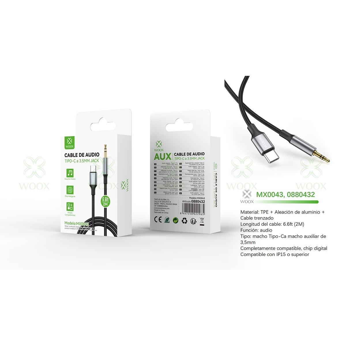 WOOX MX0043 AUDIO CABLE 3.5MM AUX TO TYPE-C 2M NEGRO