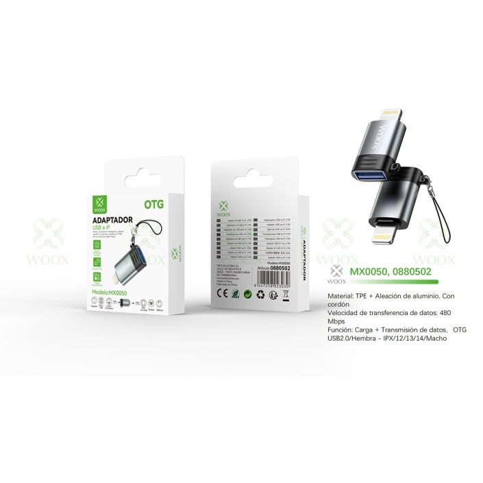 WOOX MX0050 ADAPTER USB/F TO LIGHTNING/M OTG NEGRO