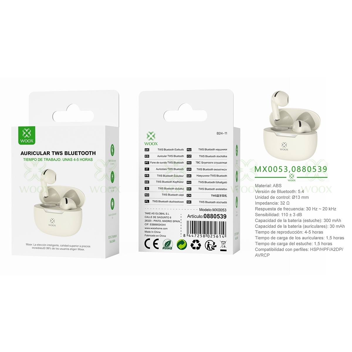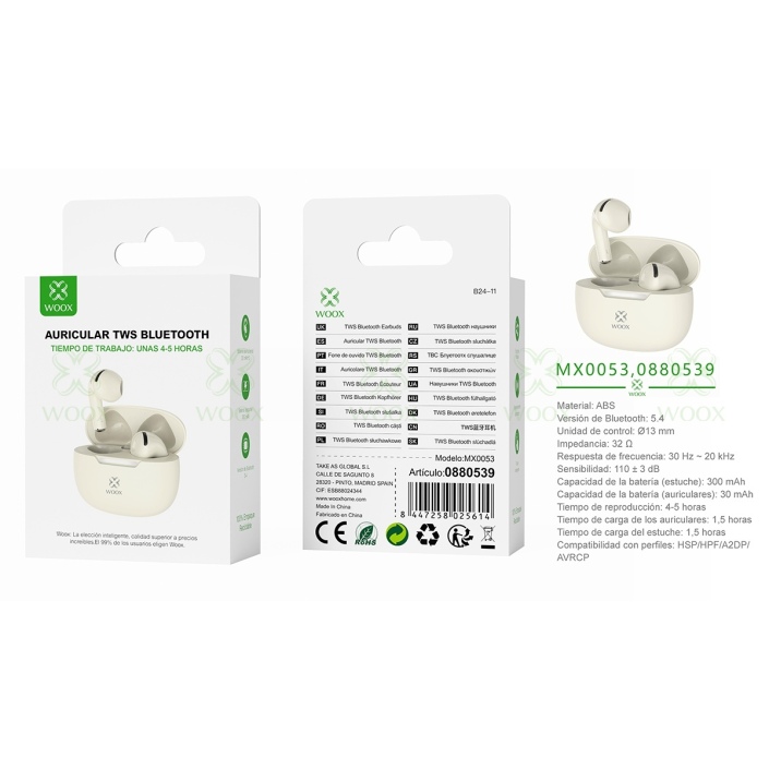 WOOX MX0053 TWS EARPHONE V5.3 JL6983D2 300MAH BEIGE