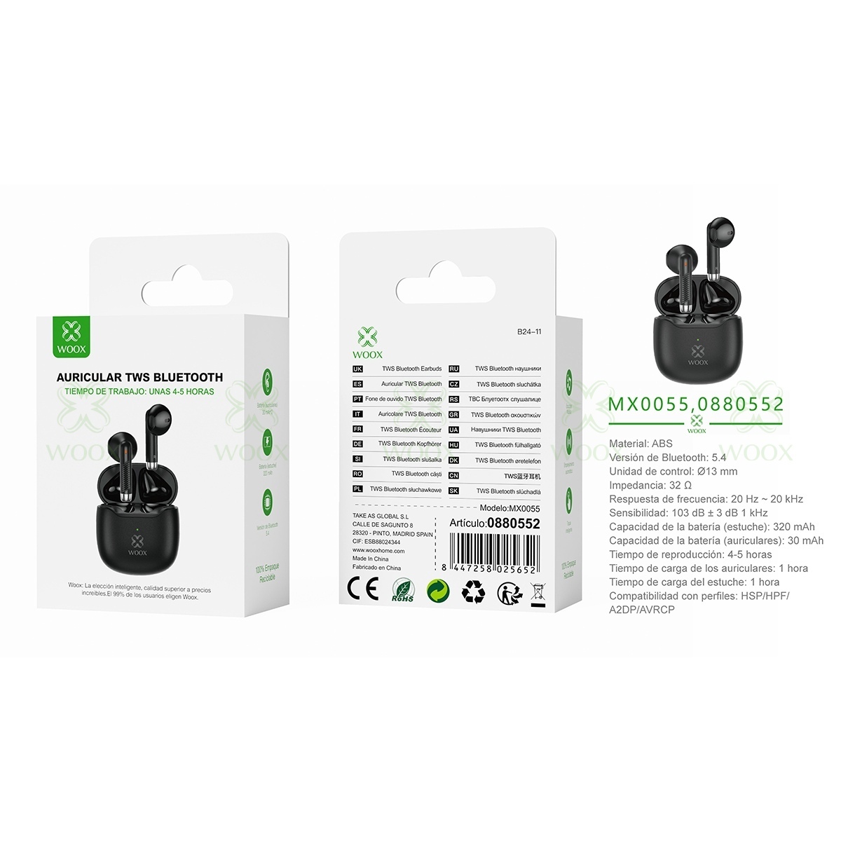 WOOX MX0055 TWS EARPHONE V5.4 JL6983D2 320MAH/30MAH NEGRO