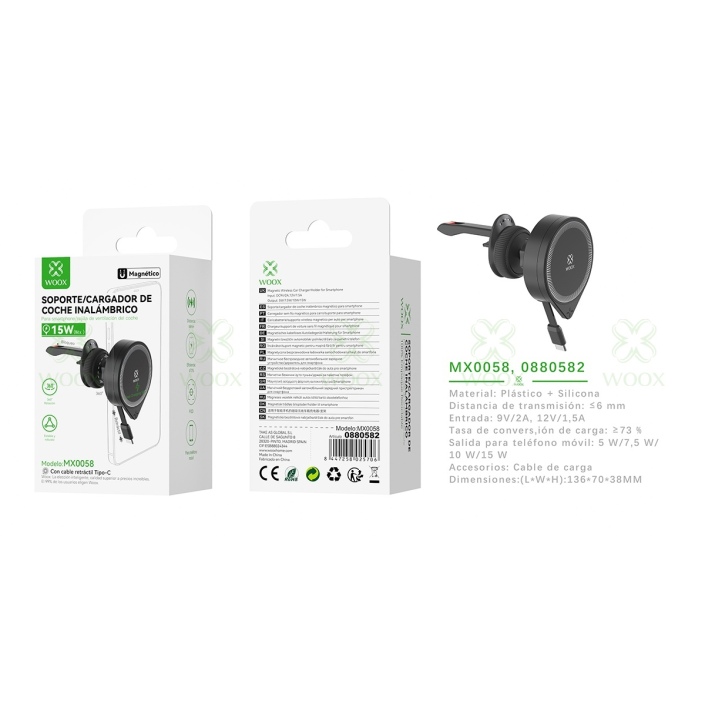 Car magnetic Wireless Charger MX0058 15W with Type-C cable(20W)-Negro