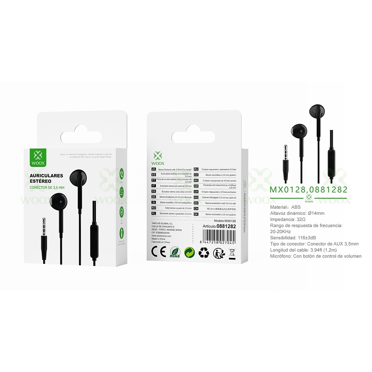 WOOX MX0128 AURICULARES CON CABLE CONECTOR DE 3,5MM (1,2M) NEGRO