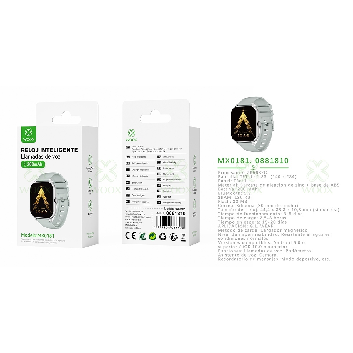 WOOX MX0181 SMART WATCH ZK5682C 1,83'' TFT DISPLAY CON FUNCION LLAMADA GRIS