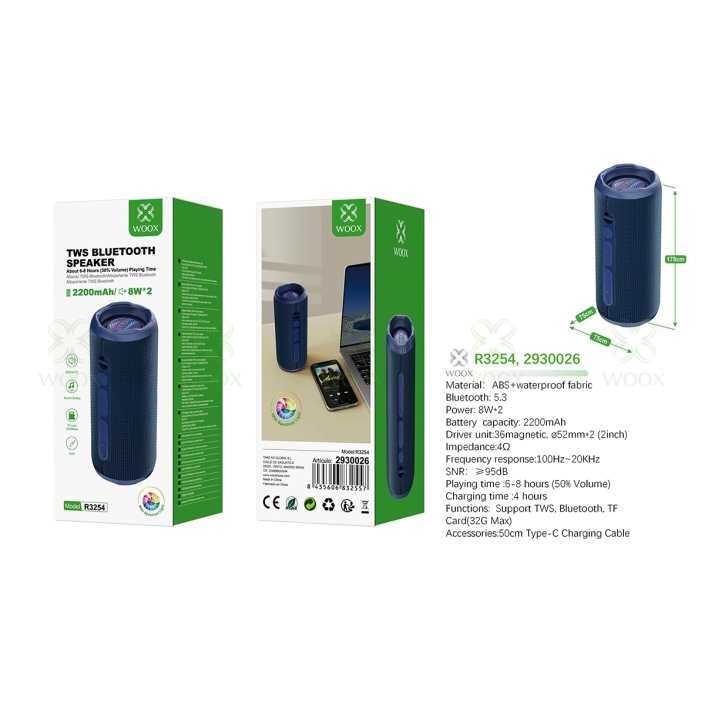 WOOX R3254 BLUETOOTH SPEAKER V5,3 JL7016C 2200MAH 8W*2 AZUL