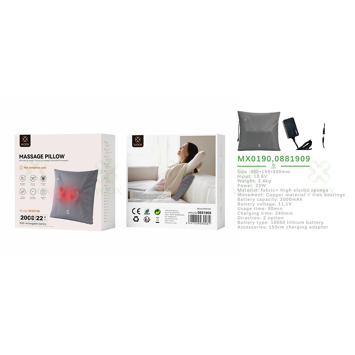 massage pillow MX0190 22W 360*155*360mm-grey