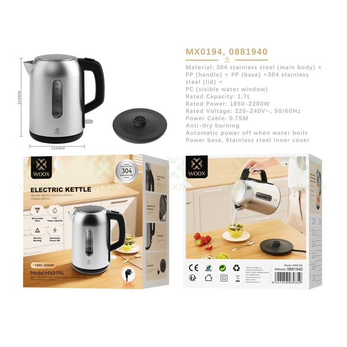 Electric Kettle MX0194 1.7L 1850W-2200W-silver
