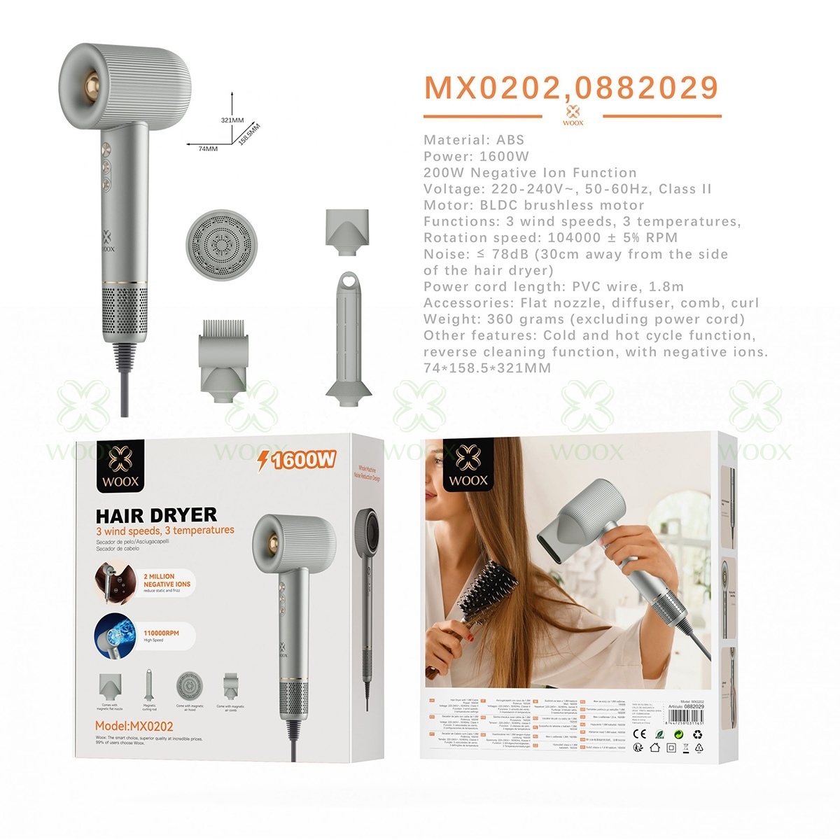 Electric Hair Drier MX0202 1600W 3 wind speeds, 3 temperature levels with Magnetic accessory-gun