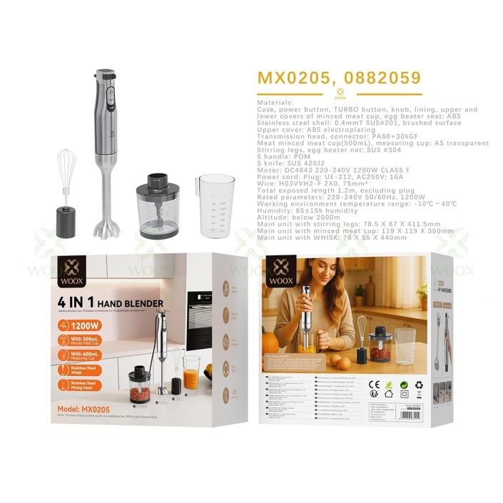 4 IN 1 Hand Blender MX0205 1000W The Unit+Whisk+500ml Chopper+600ml Beaker