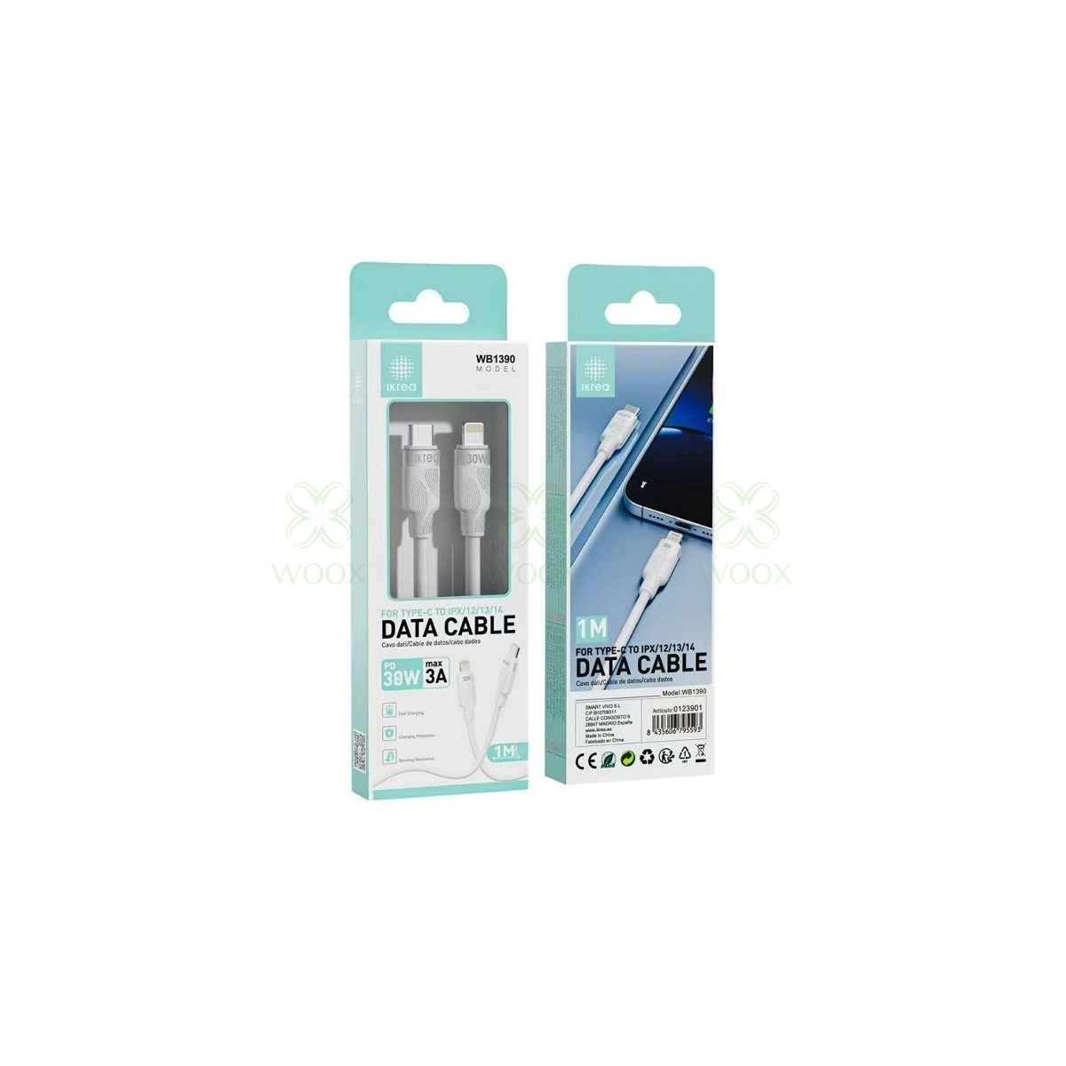 IKREA WB1390 CABLE TRENZADO DE CARGA RAPIDA PD TYPE-C TO LIGHTNING 30W 3A MAX 1M BLANCO