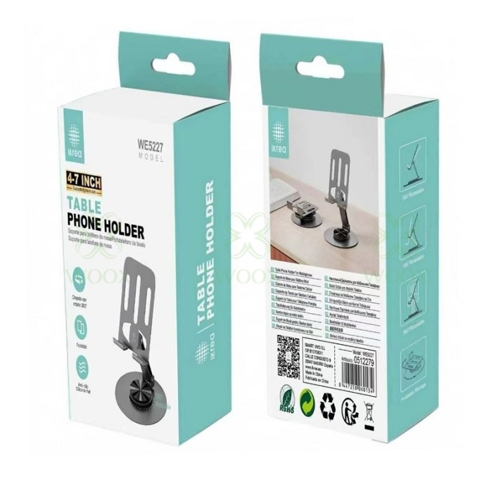 IKREA WE5227 SOPORTE DE MOVIL DE METAL PLEGABLE Y EXTENSIBLE ALTURA MAX 140MM PARA MESA GRIS
