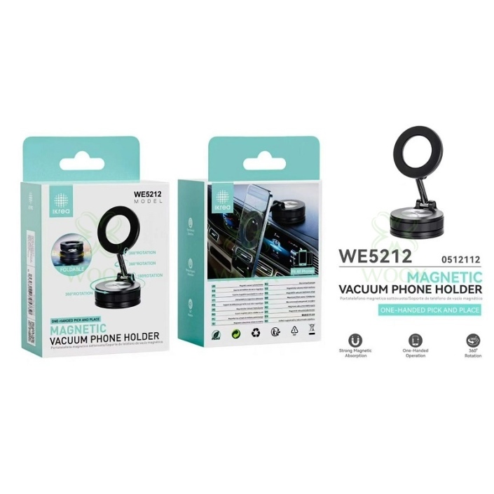 IKREA WE5212 SOPORTE UNIVERSAL MAGNETICO DE SUCCION PARA COCHE 360 ROTACION NEGRO