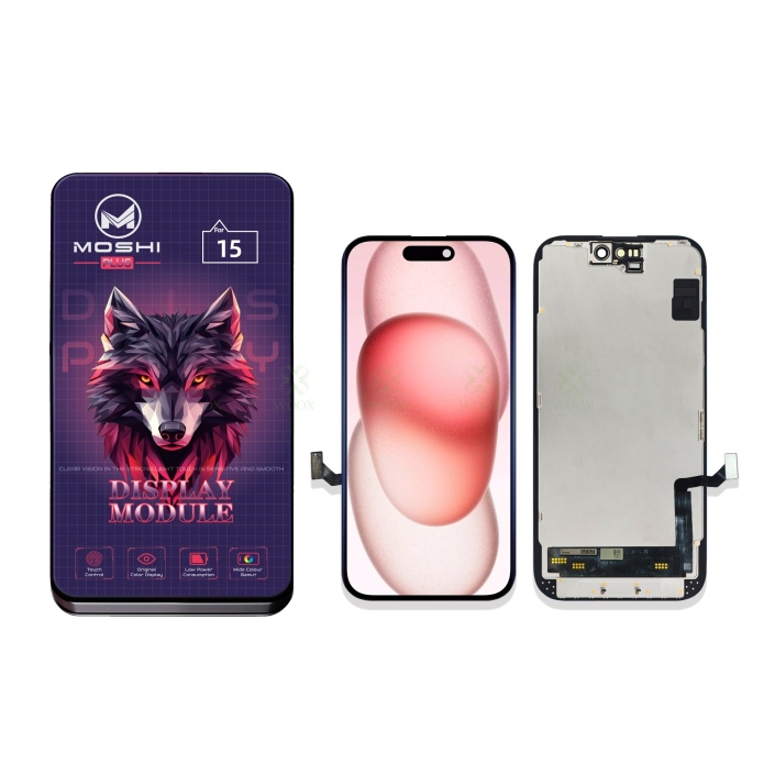 PANTALLA COMPLETA PARA IPHONE 15 NEGRA OLED DURA(MOSHI PLUS)
