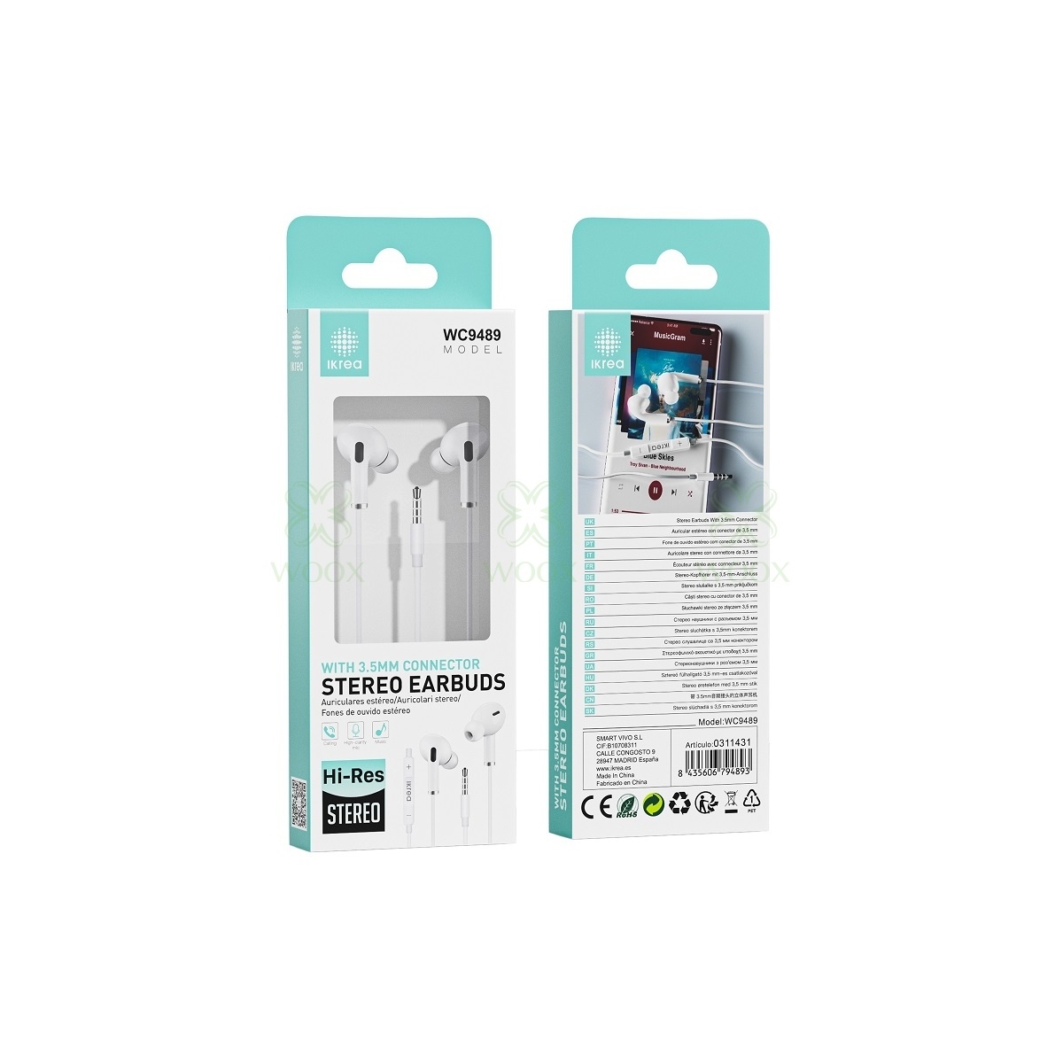 IKREA WC9489 AURICULARES HI-RES STEREO CON GOMA CONECTOR AUDIO JACK 3,5MM BLANCO