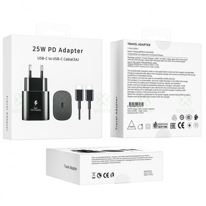 SA2000 PD CARGADOR CON CABLE USB-C TO USB-C 25W 3A NEGRO(ENVASE NUEVO)