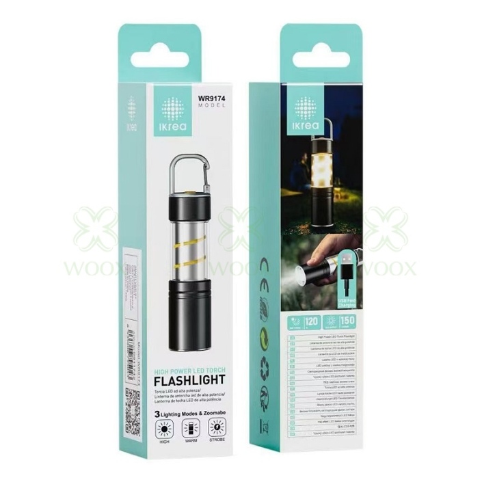 IKREA WR9174 LINTERNA DE ANTORCHA LED ALTA POTENCIA INTERFAZ USB 3 MODOS 120M 150 LUMENES