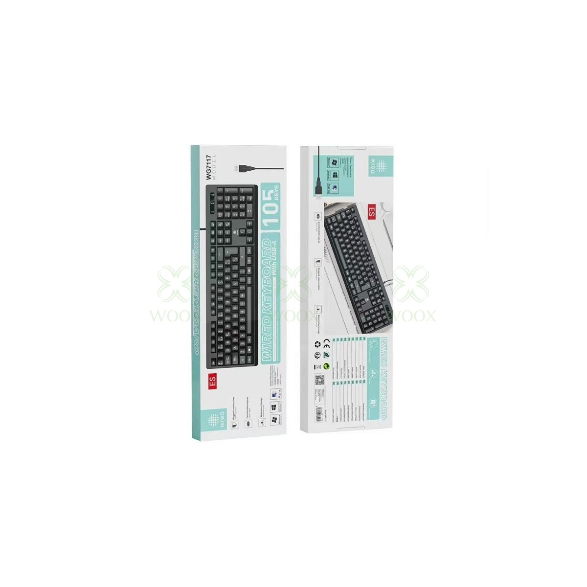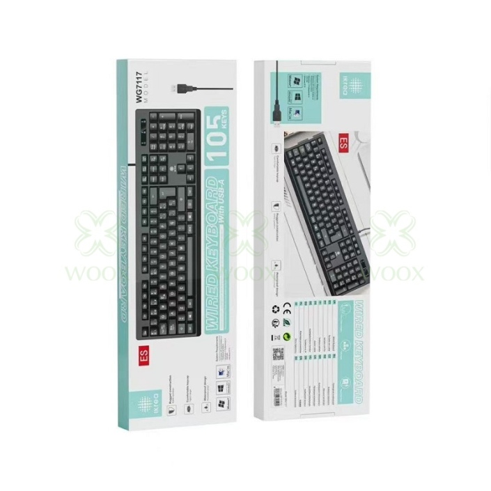 IKREA WG7117 TECLADO CON CABLE 105 KEYS CON INTERFAZ USB-A NEGRO