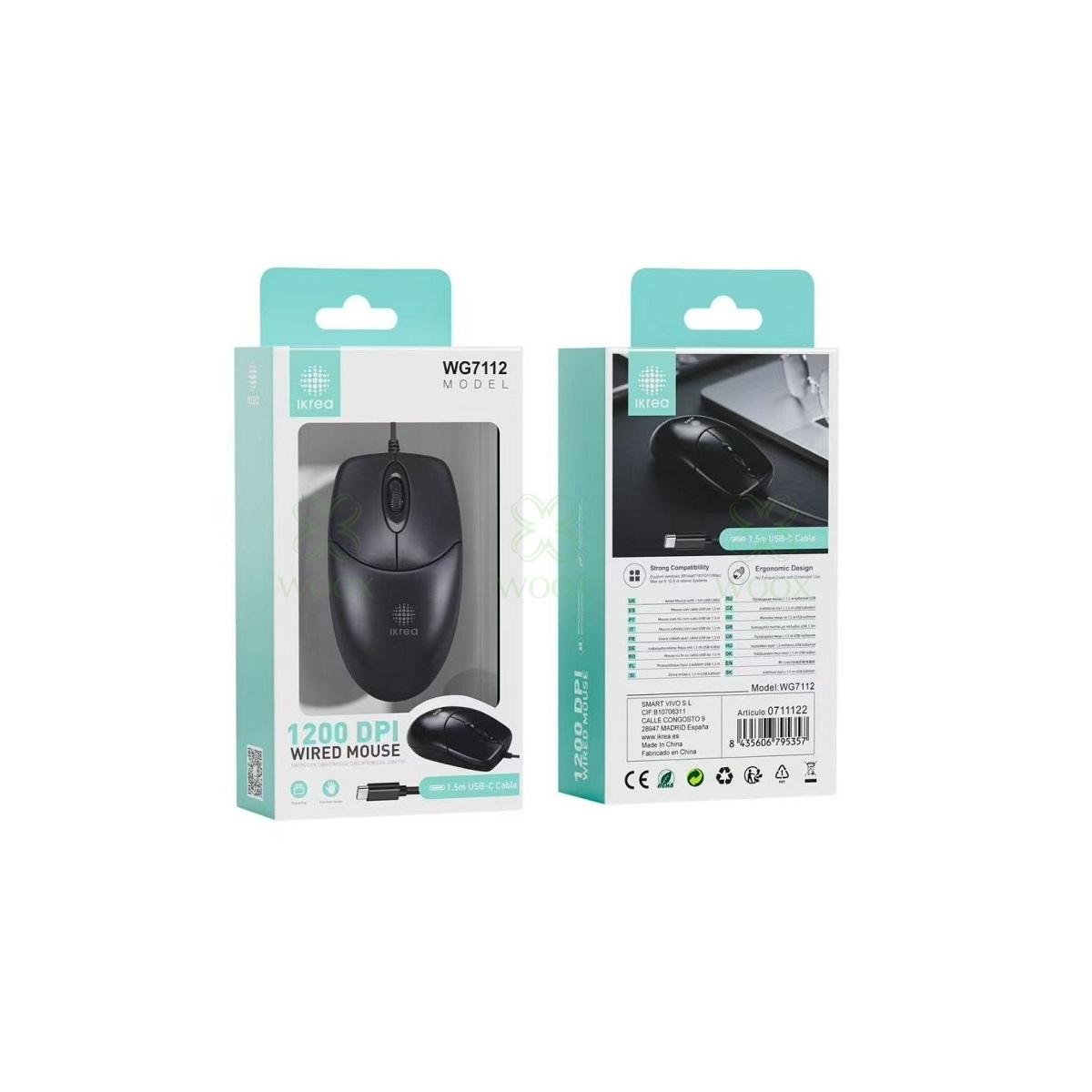 IKREA WG7112 RATON CON CABLE 1.5M INTERAZ TYPE-C 1200DPI NEGRO
