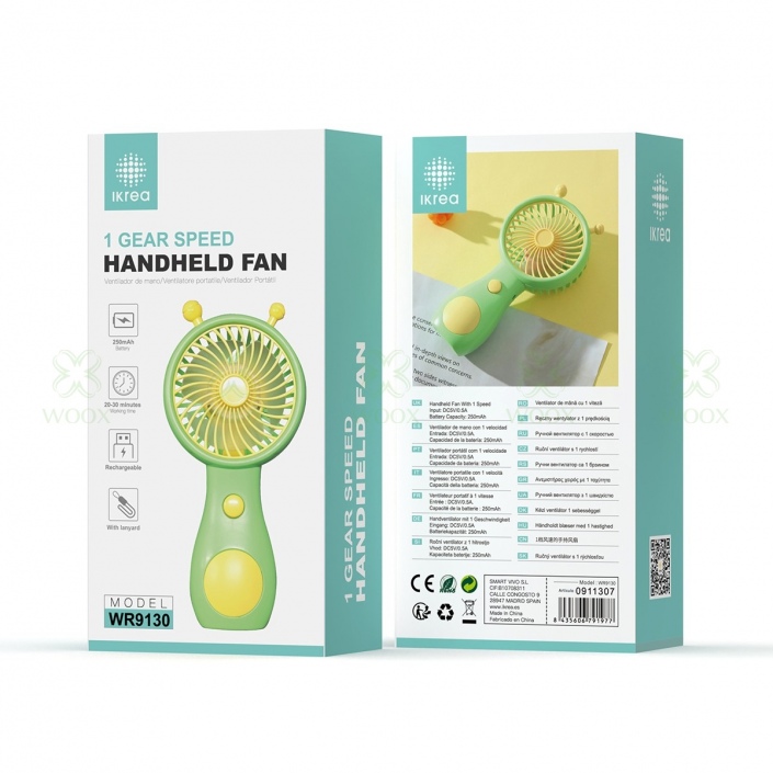 IKREA WR9130 VENTILADOR DE MANO ESTILO CARTOON 1 VELOCIDAD 250MAH 70*40*145MM VERDE