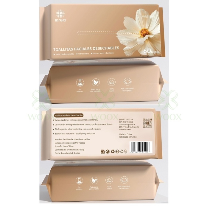 IKREA WR9180 TOALLITAS FACIALES DESECHABLES 100% VISCOSA 20*20CM 60PCS 190G(NO ENTRA EN PORTE GRATIS)