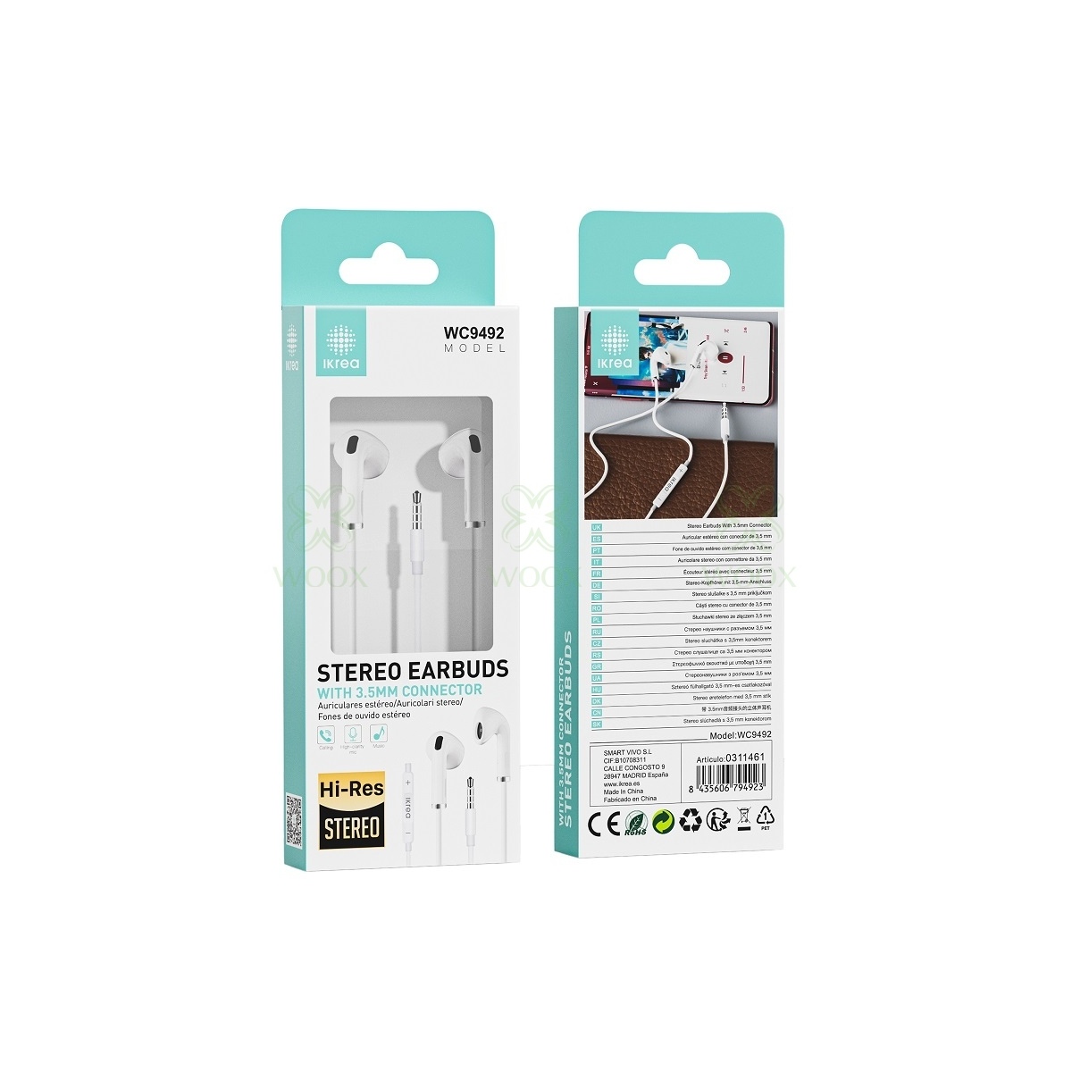 IKREA WC9492 AURICULARES HI-RES STEREO CONECTOR AUDIO JACK 3,5MM BLANCO