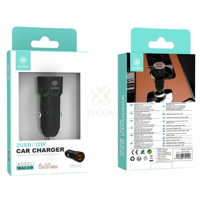 IKREA WA0319 CARGADOR PARA COCHE 2 PUERTOS USB-A 12W NEGRO
