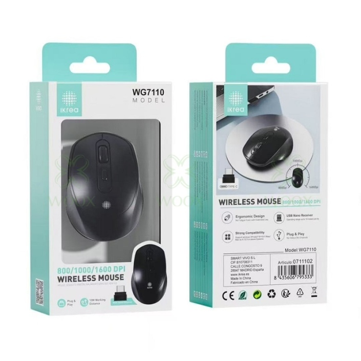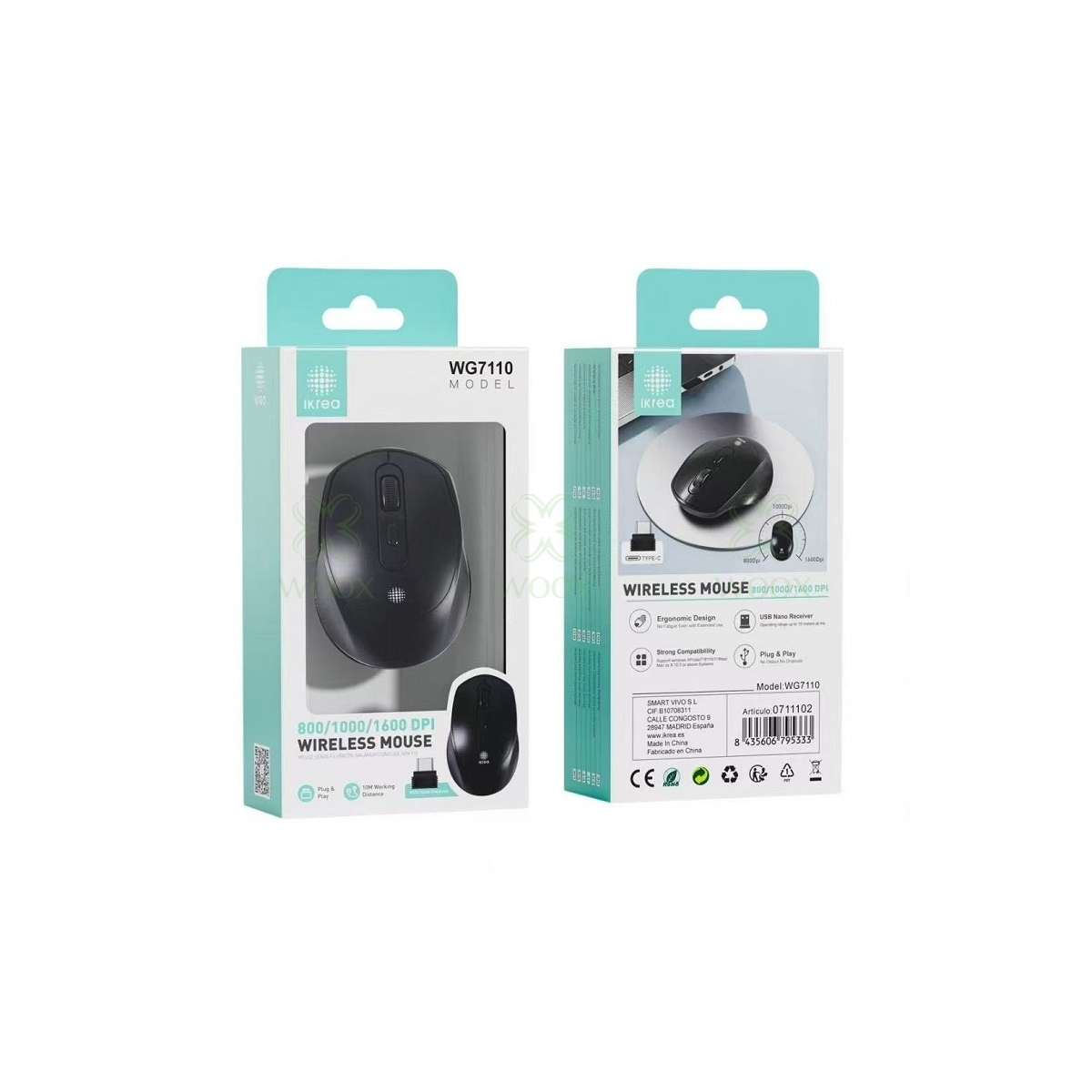 IKREA WG7110 RATON INALAMBRICO CON NANO RECEPTOR TYPE-C 800/1000/1600DPI NEGRO
