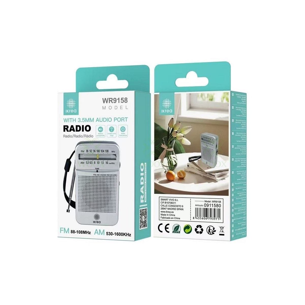 IKREA WR9158 RADIO FM88-108MHZ AM 2,0-1600KHZ CON ANTENA LARGA Y CORREA BLANCO