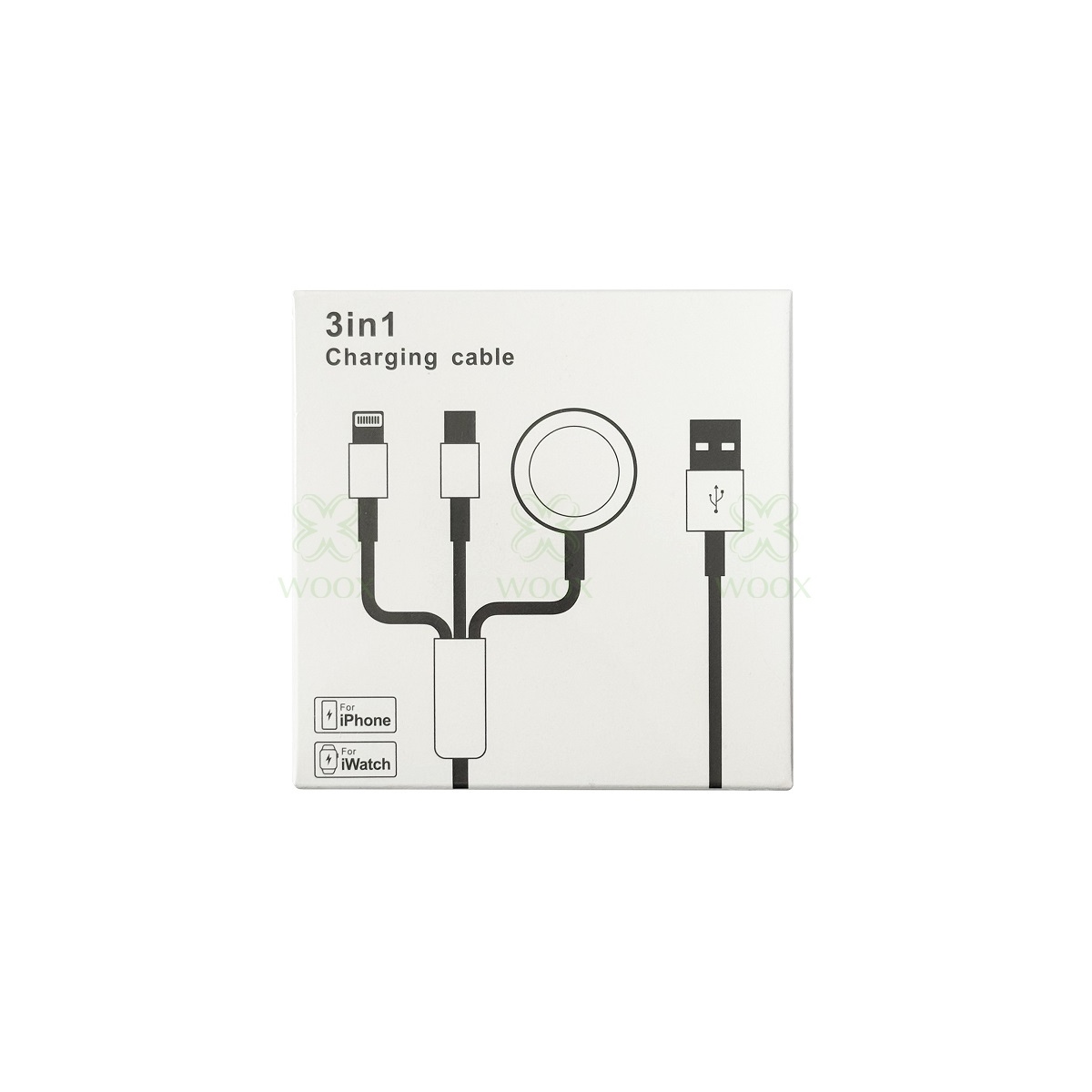3 IN 1 CARGADOR PARA APPLE WATCH CABLE DE CARGA MAGNETICA CARGADOR MULTIPLE USB CON LIGHTNING/USB C/IWATCH 1.2M BLANCO