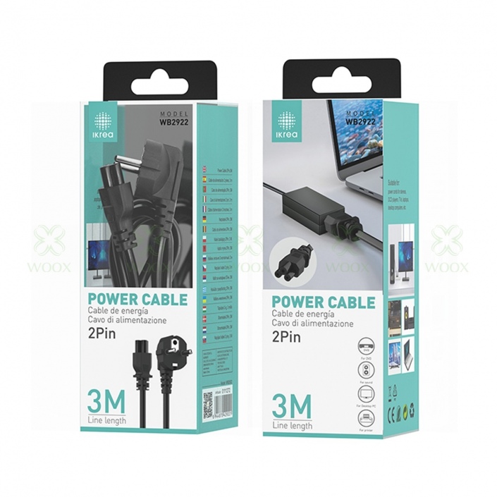 IKREA WB2922 CABLE DE ALIMENTACIÓN 2PIN 3M NEGRO