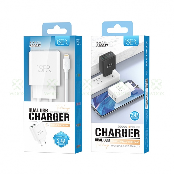 ISER SA0027 CARGADOR RÁPIDO CON CABLE LIGHTNING 2 PUERTOS 2.4A BLANCO