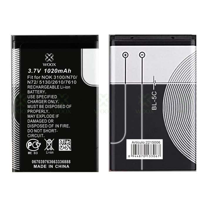 ISER BATERÍA BL-5C PARA NOKIA 3100/N70/N72/5130/2610/7610 1020MAH 3.7V